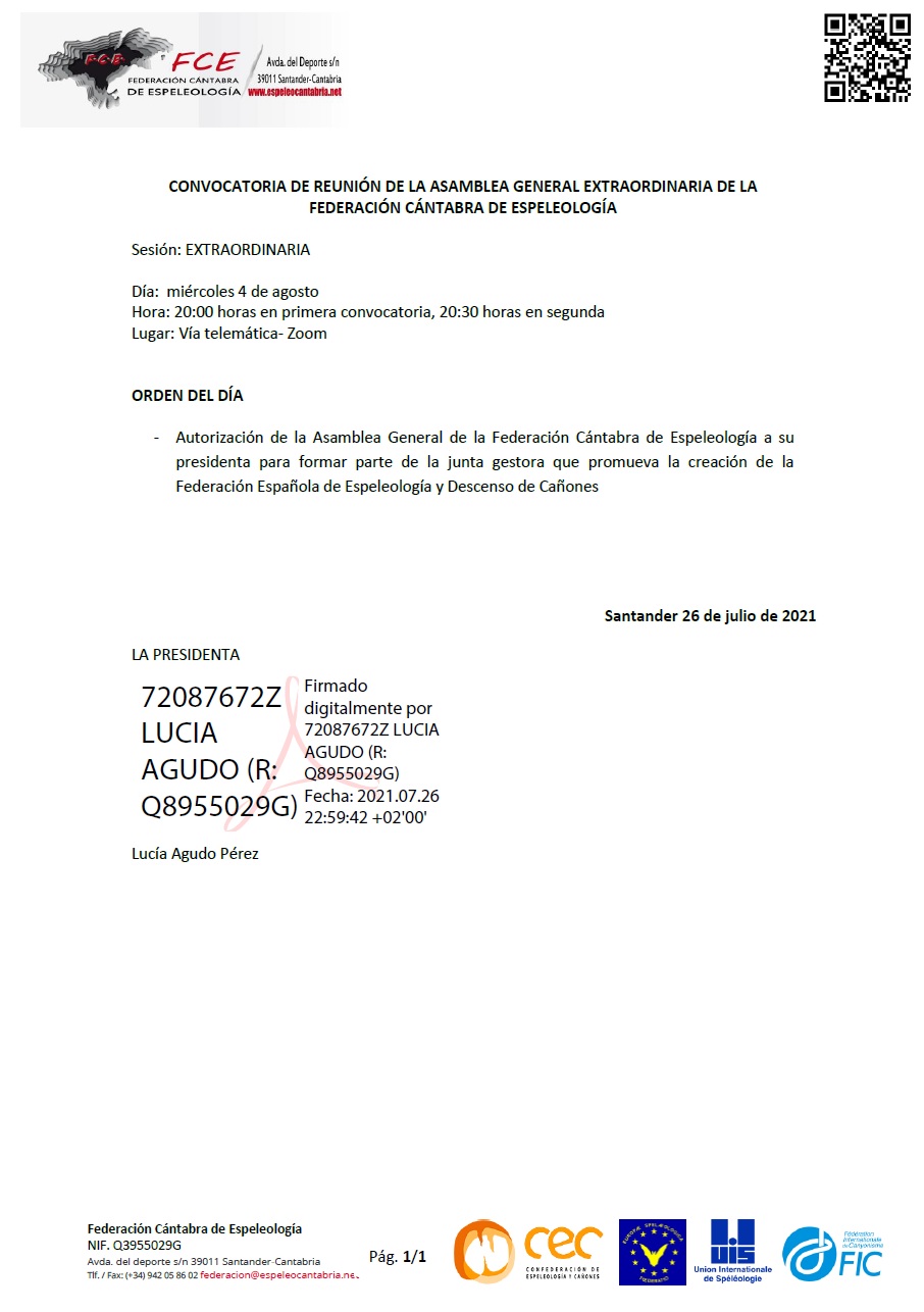 En fechas recientes ha sido convocada una Asamblea Extraordinaria para el 4 de agosto, donde se tratará como único punto, la próxima creación de la Federación Española de Espeleología. Los asambleistas ya ha sido convocados para esta reunión que se realizará de forma telemática, evitando así la reunión presencial en la lucha frente a la Covid-19.