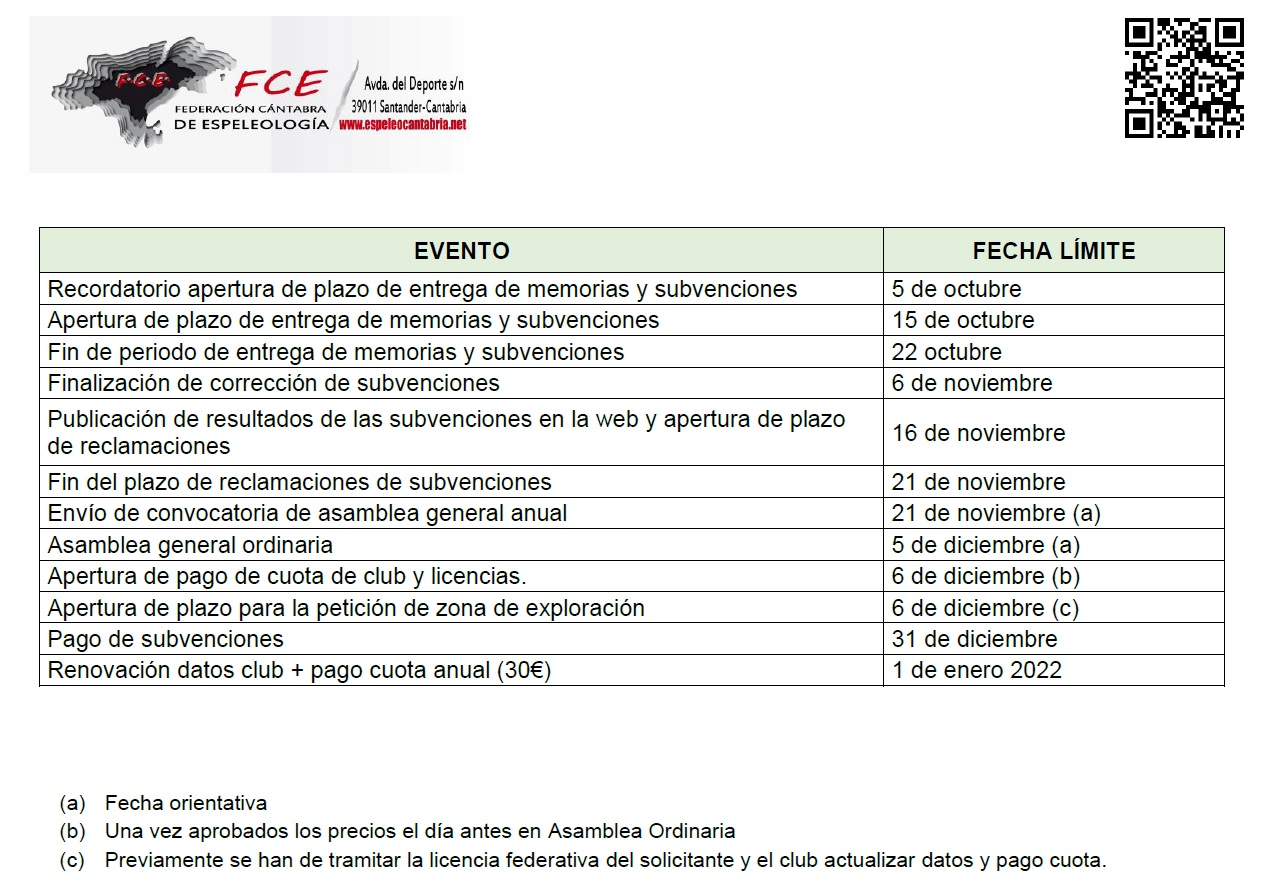 Ha sido enviado por correo electrónico a los clubes y representantes federativos y lo hacemos público también ahora en la Web. En la imagen adjunta podéis encontrar el calendario de fechas importantes que hemos elaborado de cara a las entregas de memorias, solicitud de zonas y demás trámites que tendrán lugar en los próximos meses, con tiempo suficiente para que todos los trámites se puedan realizar a tiempo.