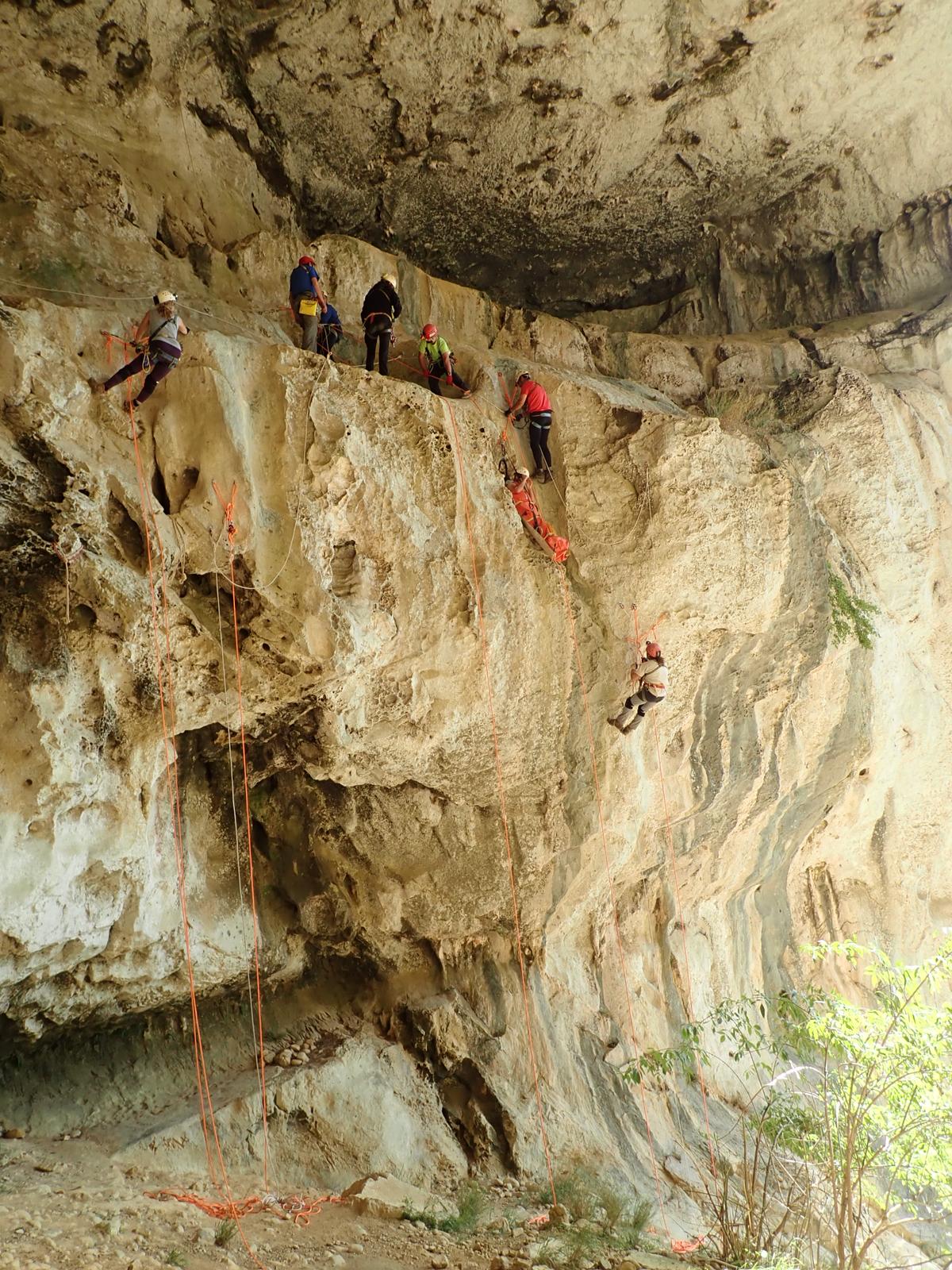 Nuevamente se ha realizado desde la FCE un nuevo curso de técnicas básicas en Espeleosocorro los días 12 y 13 de Octubre, con un buen ambiente de cursillistas y un tiempo fabuloso disfrutando de unas elevadas temperaturas. Ayuda el alto nivel de progresión en verticales de los asistentes a quienes se unían dos experimentados jefes de equipo y un coordinador, de manera que a las técnicas básicas se sumaban maniobras de más nivel que se ejecutaban sin contratiempos.