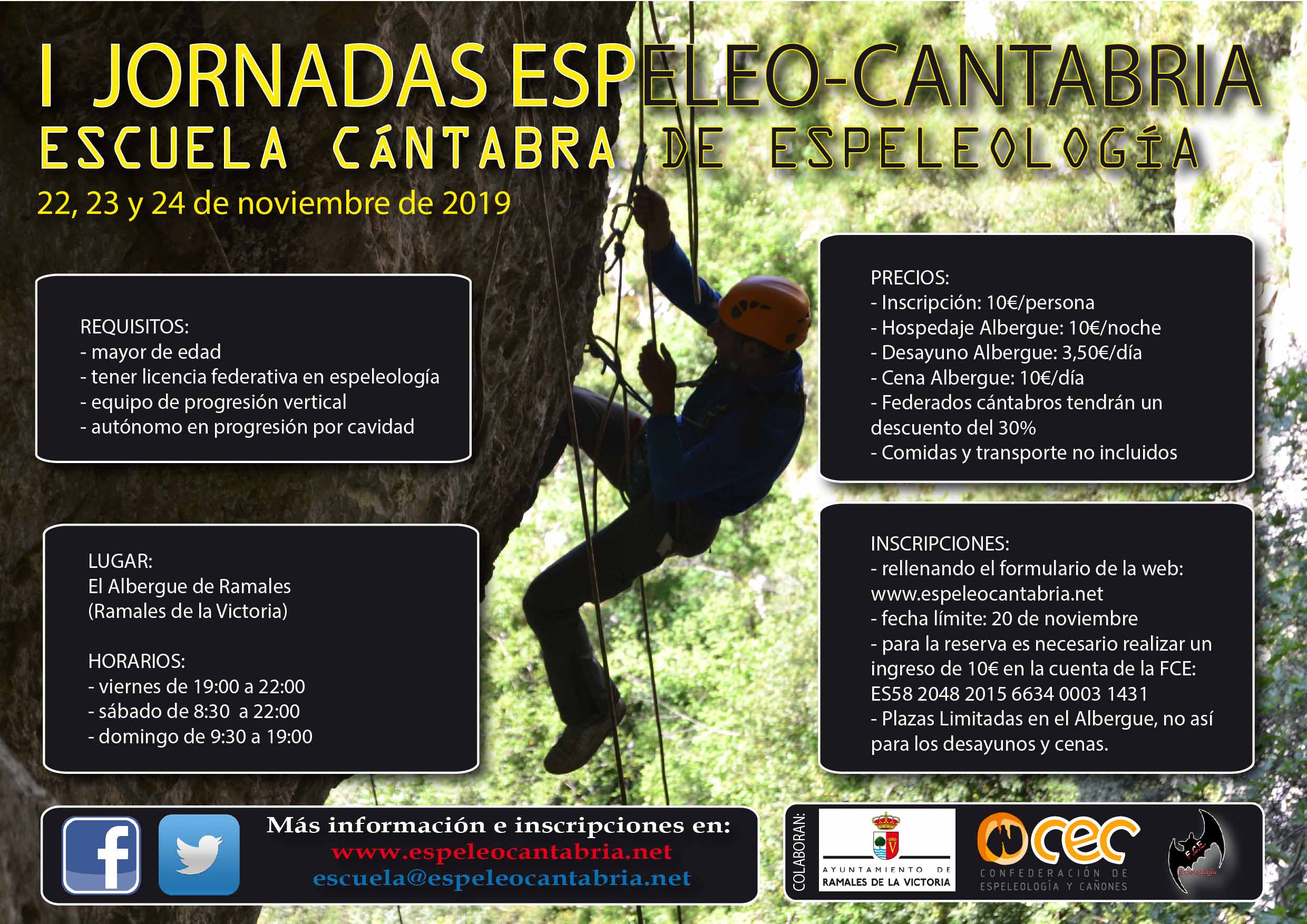 La Escuela Cántabra de Espeleología propone para el 22, 23 y 24 de noviembre unas jornadas de convivencia, actividad y aprendizaje entre todos aquellos espeleólogos cántabros y de otras comunidades que quieran participar.